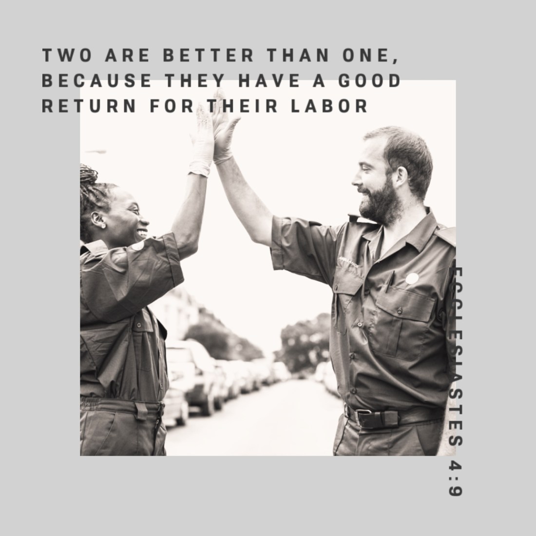“Two are better than one, because they have a good return for their labor: If either of them falls down, one can help the other up. But pity anyone who falls and has no one to help them up.”