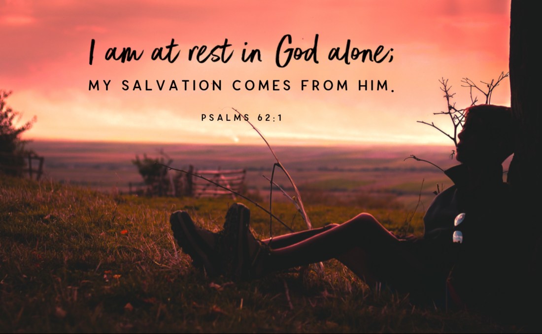 I am at rest in God alone; my salvation comes from Him. He alone is my rock and my salvation, my stronghold; I will never be shaken.”