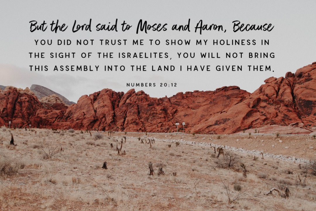 But the Lord said to Moses and Aaron, “Because you did not trust Me to show My holiness in the sight of the Israelites, you will not bring this assembly into the land I have given them.”