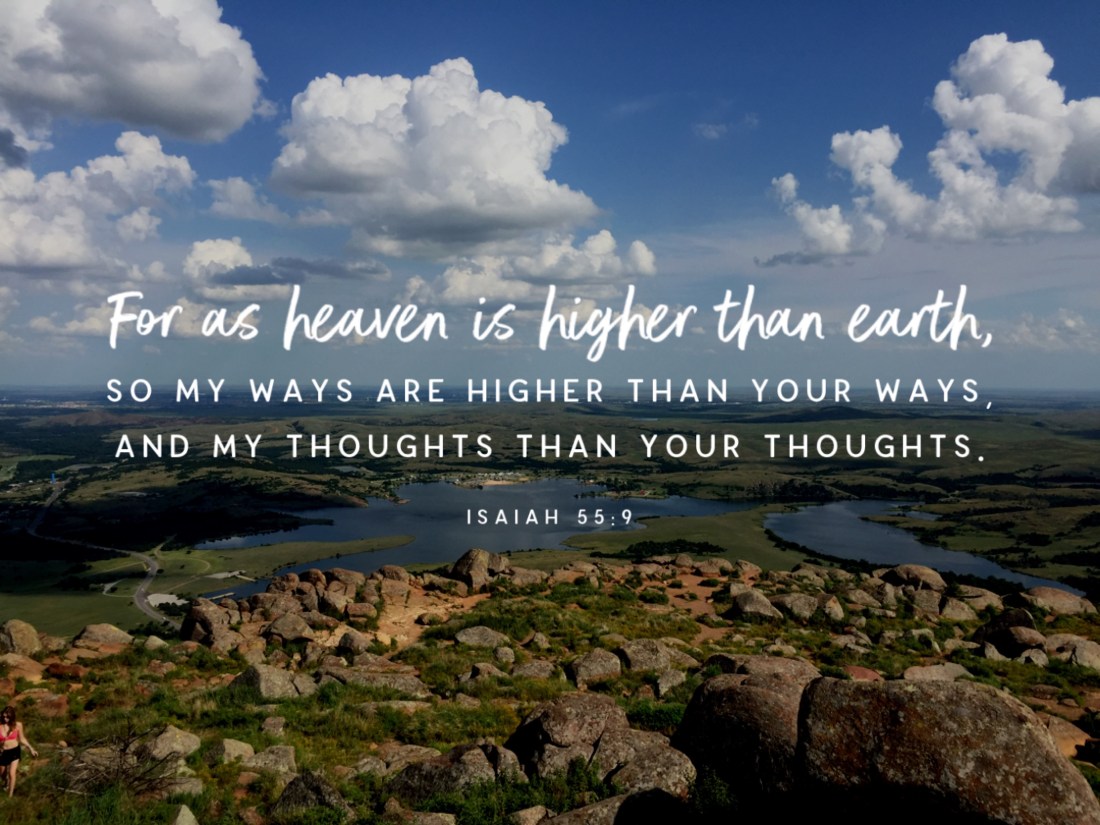 ““For My thoughts are not your thoughts, and your ways are not My ways.” This is the Lord’s declaration. “For as heaven is higher than earth, so My ways are higher than your ways, and My thoughts than your thoughts.”