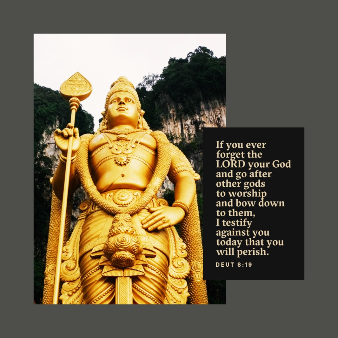 “If you ever forget the Lord your God and go after other gods to worship and bow down to them, I testify against you today that you will perish.”