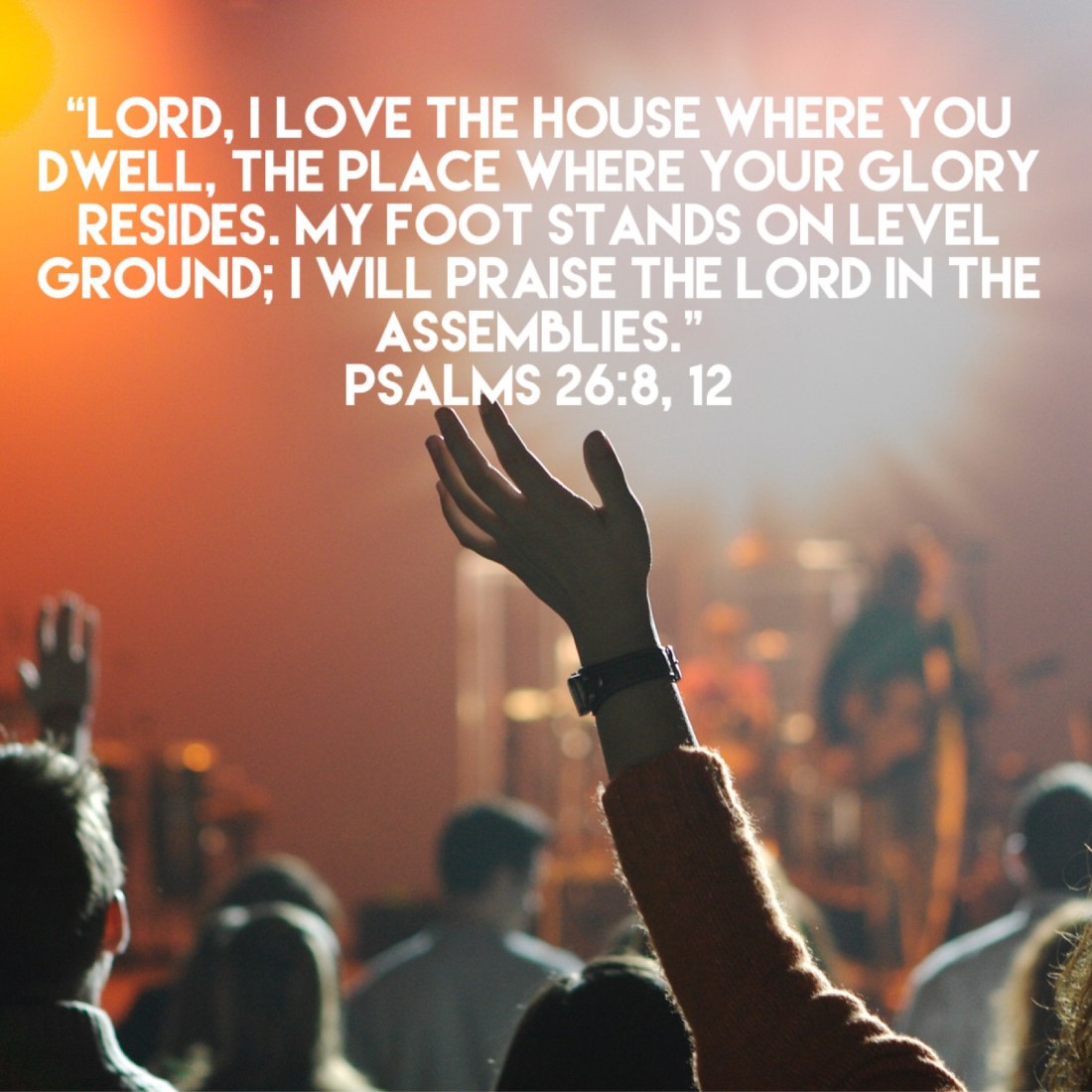 “Lord, I love the house where You dwell, the place where Your glory resides. My foot stands on level ground; I will praise the Lord in the assemblies.”