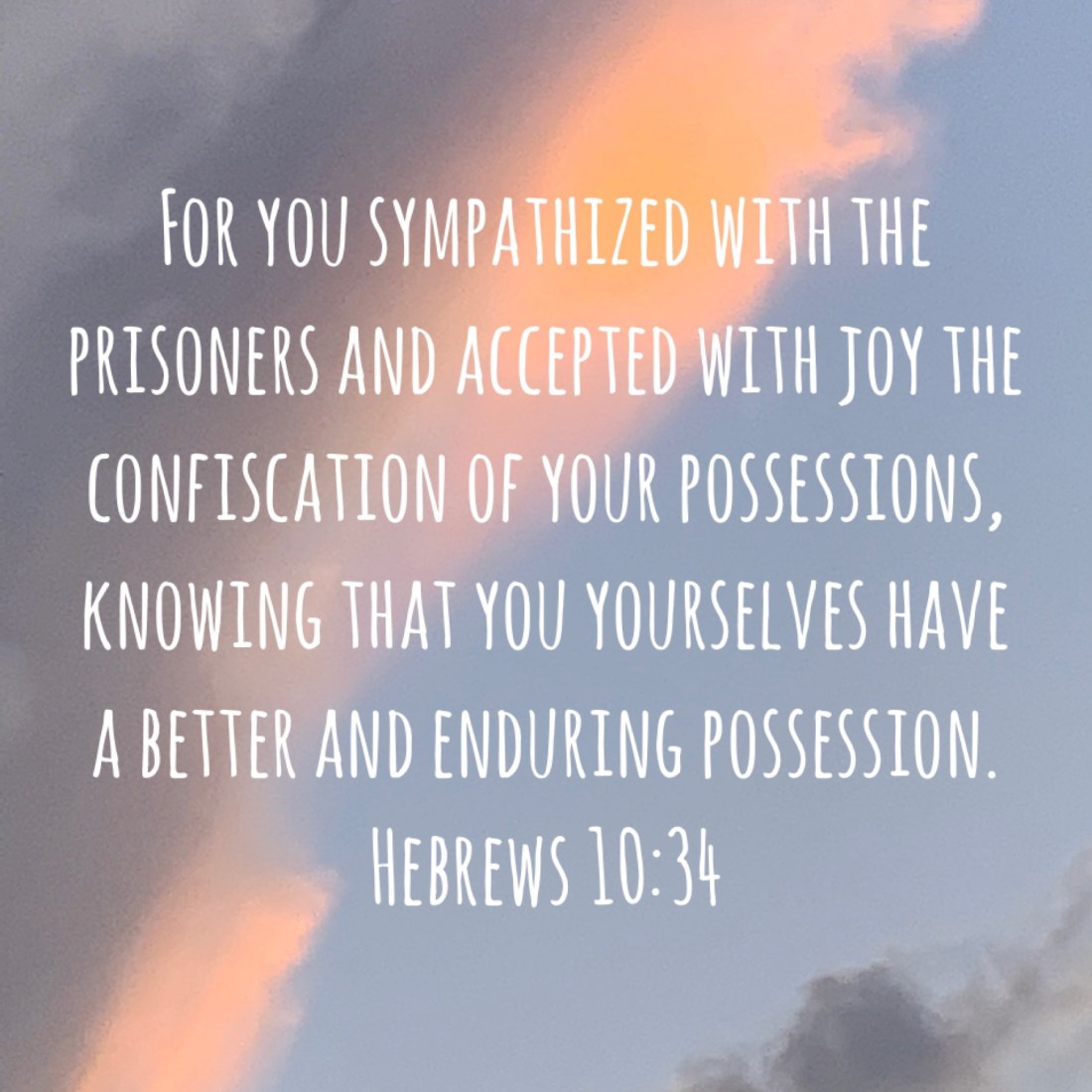 “For you sympathized with the prisoners and accepted with joy the confiscation of your possessions, knowing that you yourselves have a better and enduring possession.”