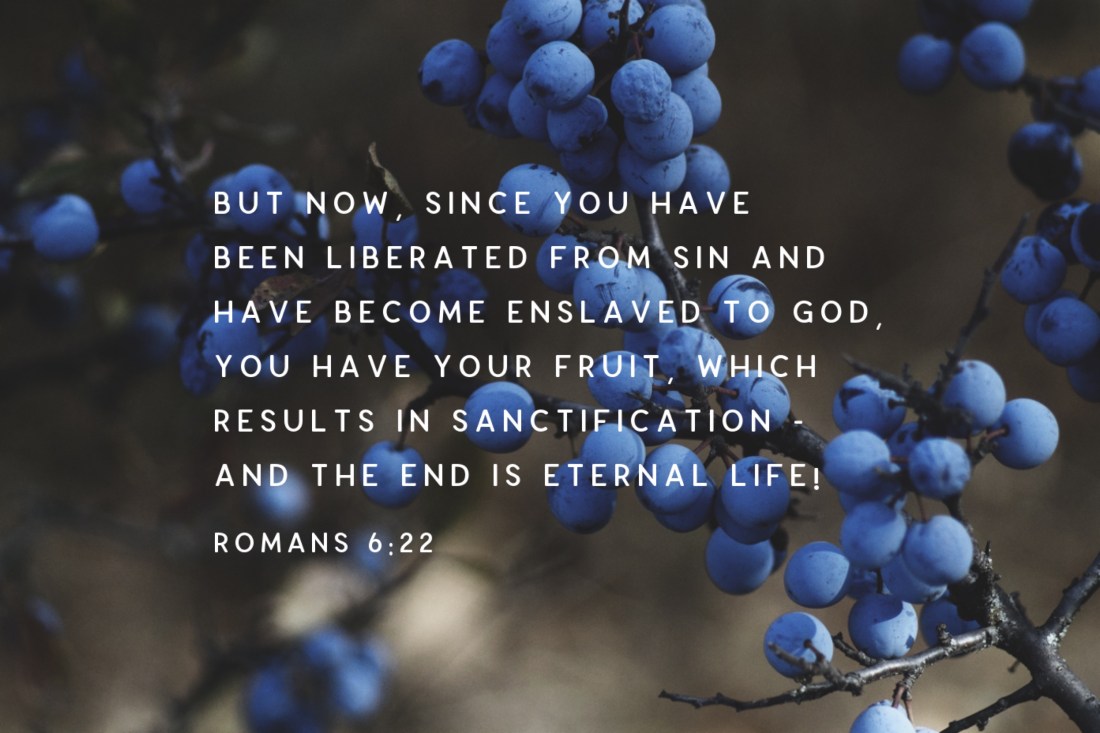 “But now that you have been set free from sin and have become slaves of God, the benefit you reap leads to holiness, and the result is eternal life.”