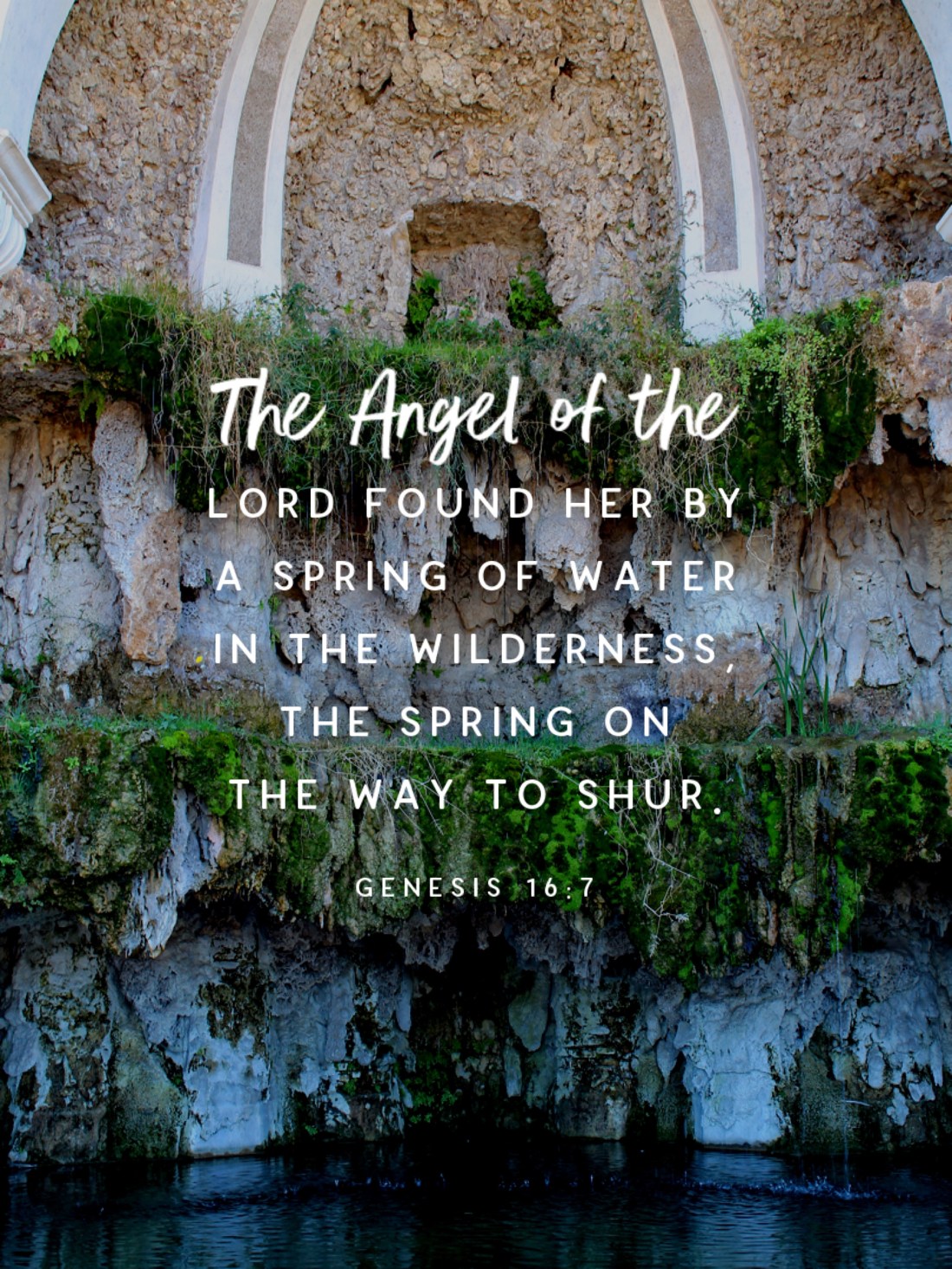 “The Angel of the Lord found her by a spring of water in the wilderness, the spring on the way to Shur. He said, “Hagar, slave of Sarai, where have you come from and where are you going? ” She replied, “I’m running away from my mistress Sarai.””