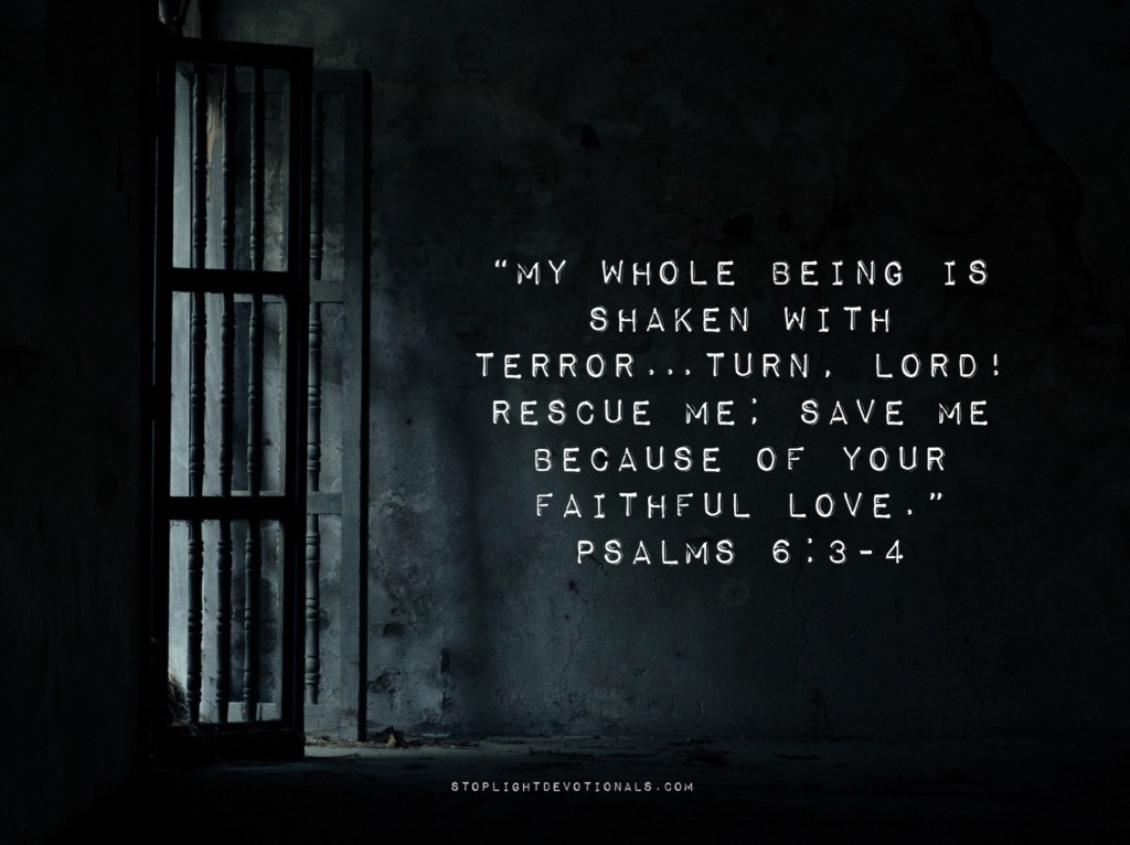 “Lord, do not rebuke me in Your anger; do not discipline me in Your wrath. Be gracious to me, Lord, for I am weak; heal me, Lord, for my bones are shaking; my whole being is shaken with terror. And You, Lord — how long? Turn, Lord! Rescue me; save me because of Your faithful love.”