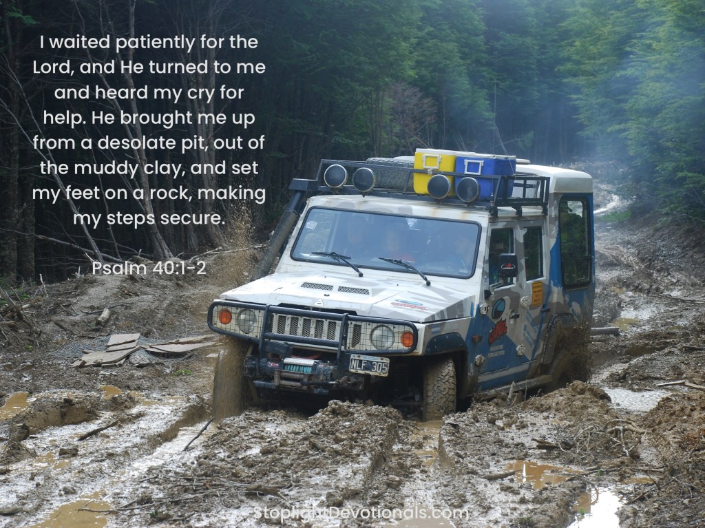 “I waited patiently for the Lord, and He turned to me and heard my cry for help. He brought me up from a desolate pit, out of the muddy clay, and set my feet on a rock, making my steps secure. He put a new song in my mouth, a hymn of praise to our God. Many will see and fear and put their trust in the Lord.”